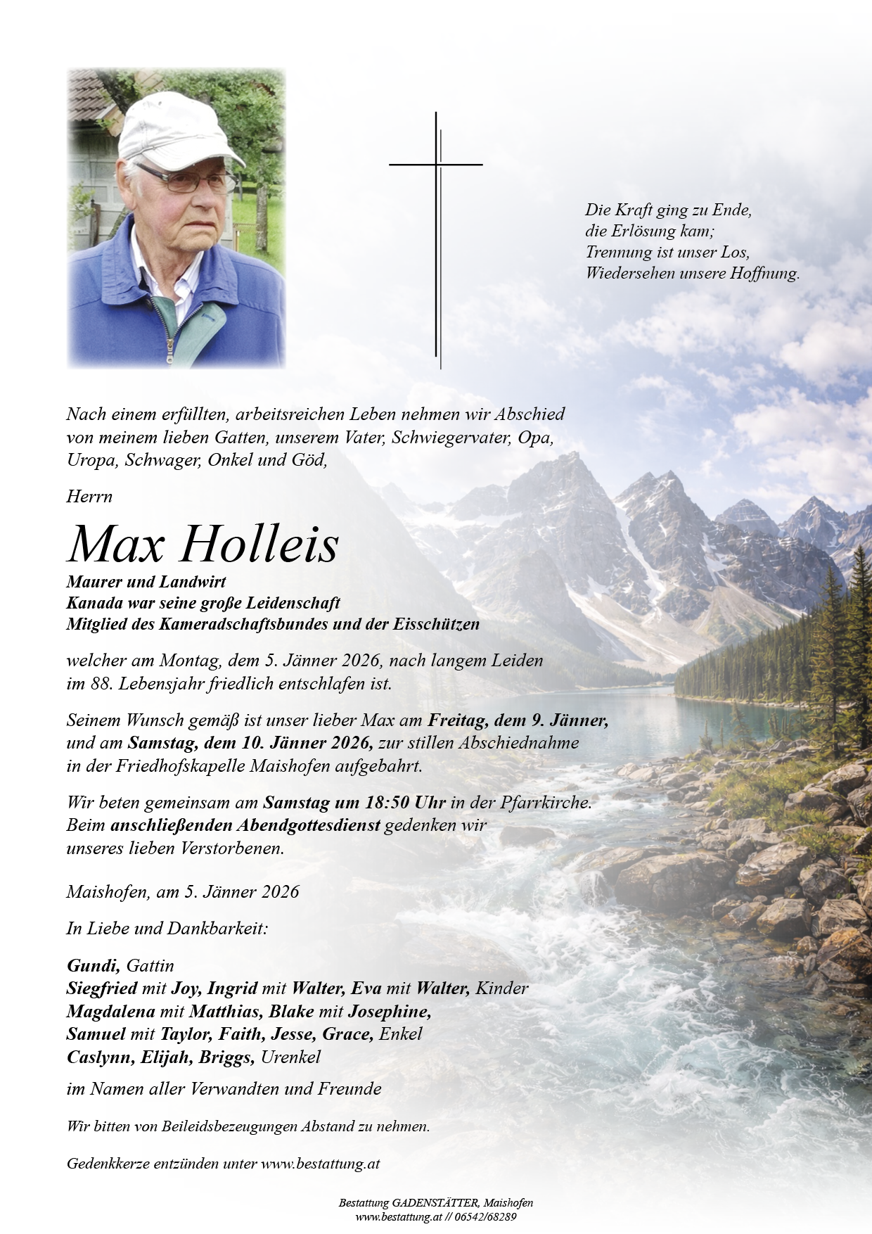 „Machs guad, liaba Max. Die Treffen und die netten Hoagascht über die Roß werden uns immer in lieber Erinnerung bleiben. Ruhe in Frieden. Der Trauerfamilie unser herzliches Beileid.”
